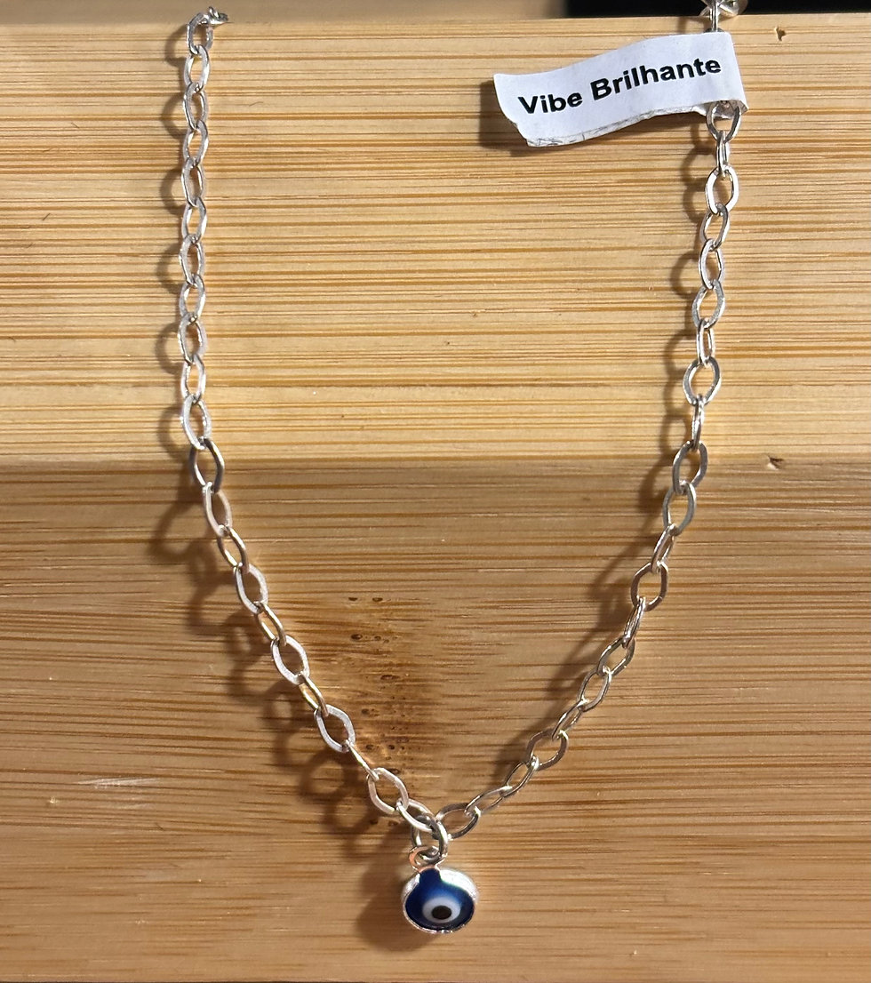 Colar + pingente Patuá mão de fatima, olho grego e figa Prata925